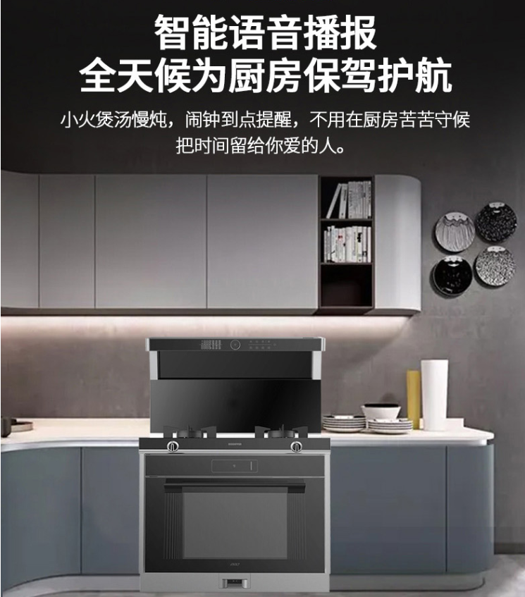 從整體上就能體現(xiàn)出它的科技感滿滿,它集合了吸油煙,灶具,蒸箱,烤箱4大基本功能,能大大提高做飯效率,頂部還有置物架進(jìn)行收納,真正的把不到1平米的進(jìn)行充分利用,真是既整潔又大氣。